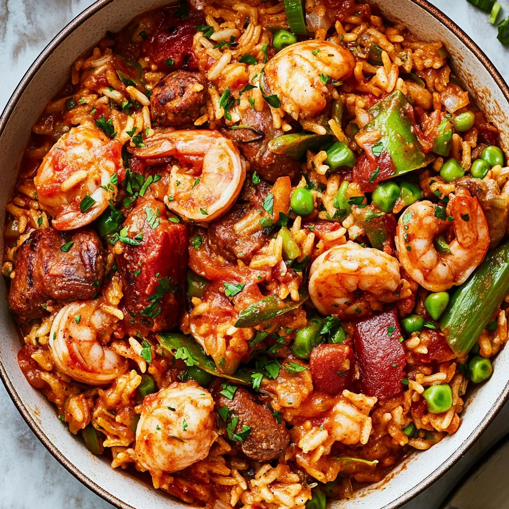 And boy, was it worth all those trials! The final result is nothing short of spectacular—a flavorful and hearty jambalaya packed with juicy shrimp, smoky sausage, and tender chicken that makes your taste buds dance with joy. It’s got that perfect medley of textures: creamy rice with a slight bite from the veggies and a kick of spice that keeps you coming back for more. I’m so excited for you to dive into this recipe—trust me, your taste buds are going to thank you as much as mine do!