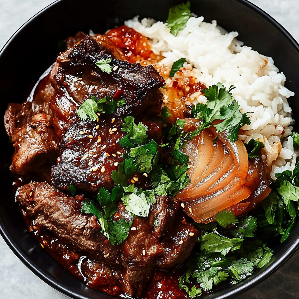 In a bowl, mix together soy sauce, gochujang, minced garlic, grated ginger, honey or brown sugar, grated Korean pear or apple, and rice vinegar. This marinade is packed with umami flavor! Pour it over the seared beef in your slow cooker.