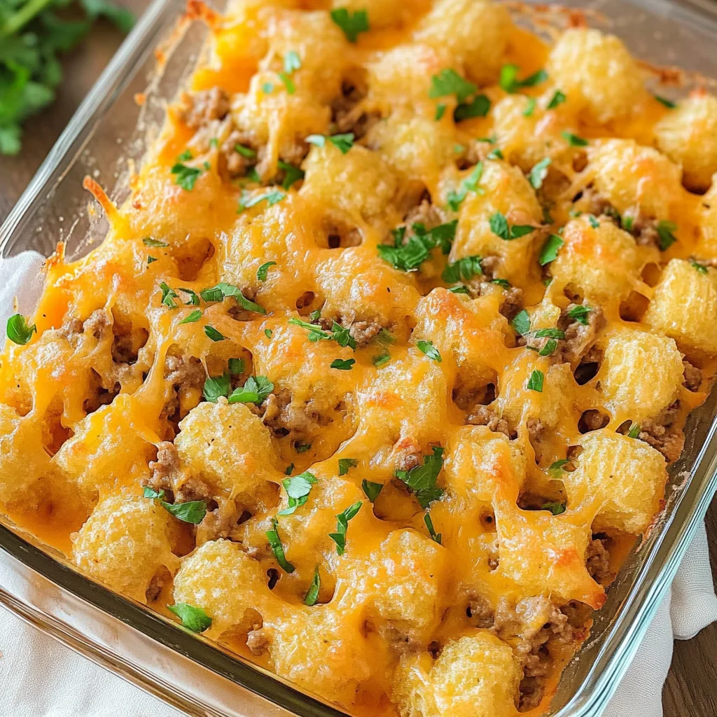2. Experience a perfectly balanced texture that combines crispy tater tots with a creamy, rich filling. The contrast between the golden-brown tater tots on top and the tender, saucy beef mixture underneath makes every bite a delightful experience.